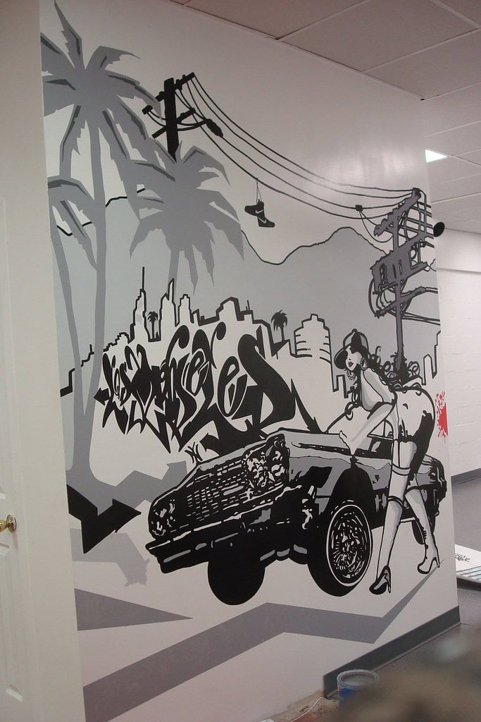 From offices to residences, Romero’s interior creations infuse spaces with movement, color, and character. Each project balances functional design with the spirit of street art, making walls part of the story.