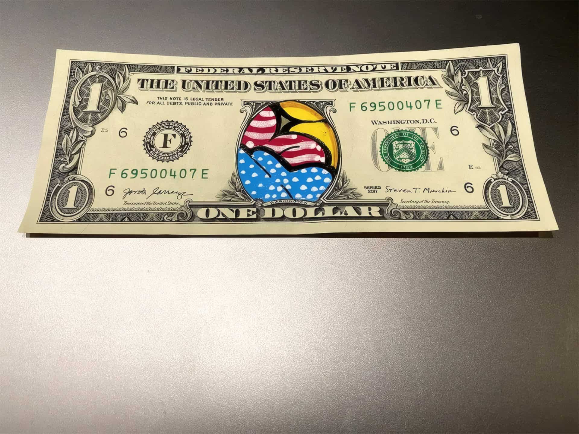 57 hand-painted, original dollar bills—each one unique and individually crafted.